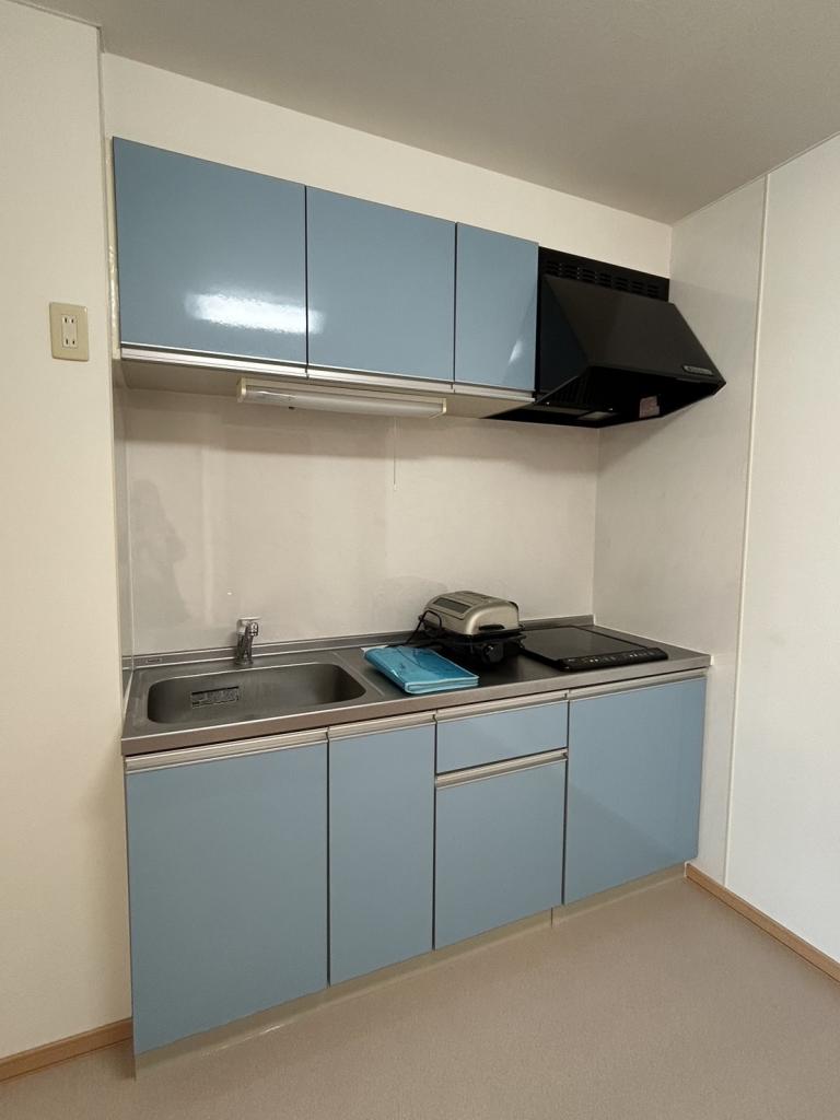 キッチンは用意不要なIHシステムキッチン!夏を快適に過ごせるエアコン付き!