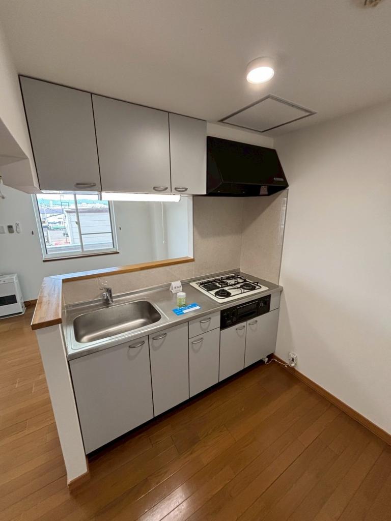 キッチンはガスシステムキッチン有り★エアコンがあり夏もお部屋で快適に過ごせます♪