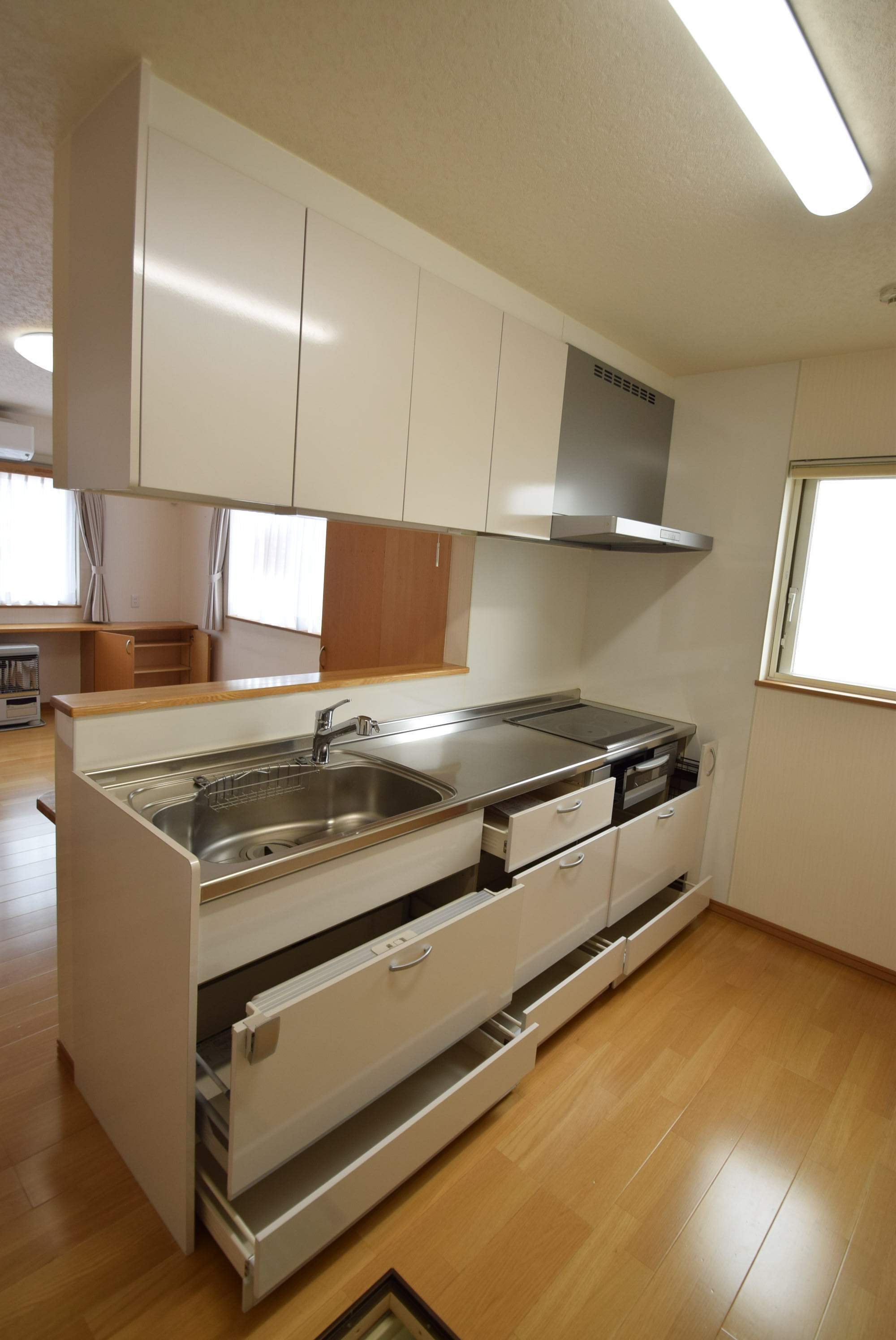 収納が多く便利♪キッチンは用意不要のIHクッキングヒーター☆