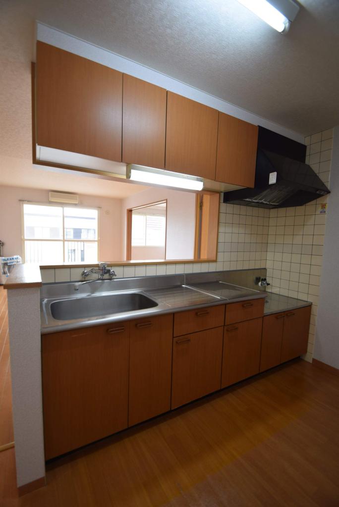 広々とした対面キッチン♪夏場に快適なエアコン付きです!