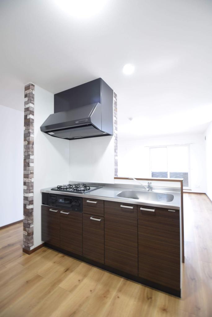 キッチンは用意不要のシステムガスキッチン☆バルコニーがあり夏場の洗濯物干しに便利♪